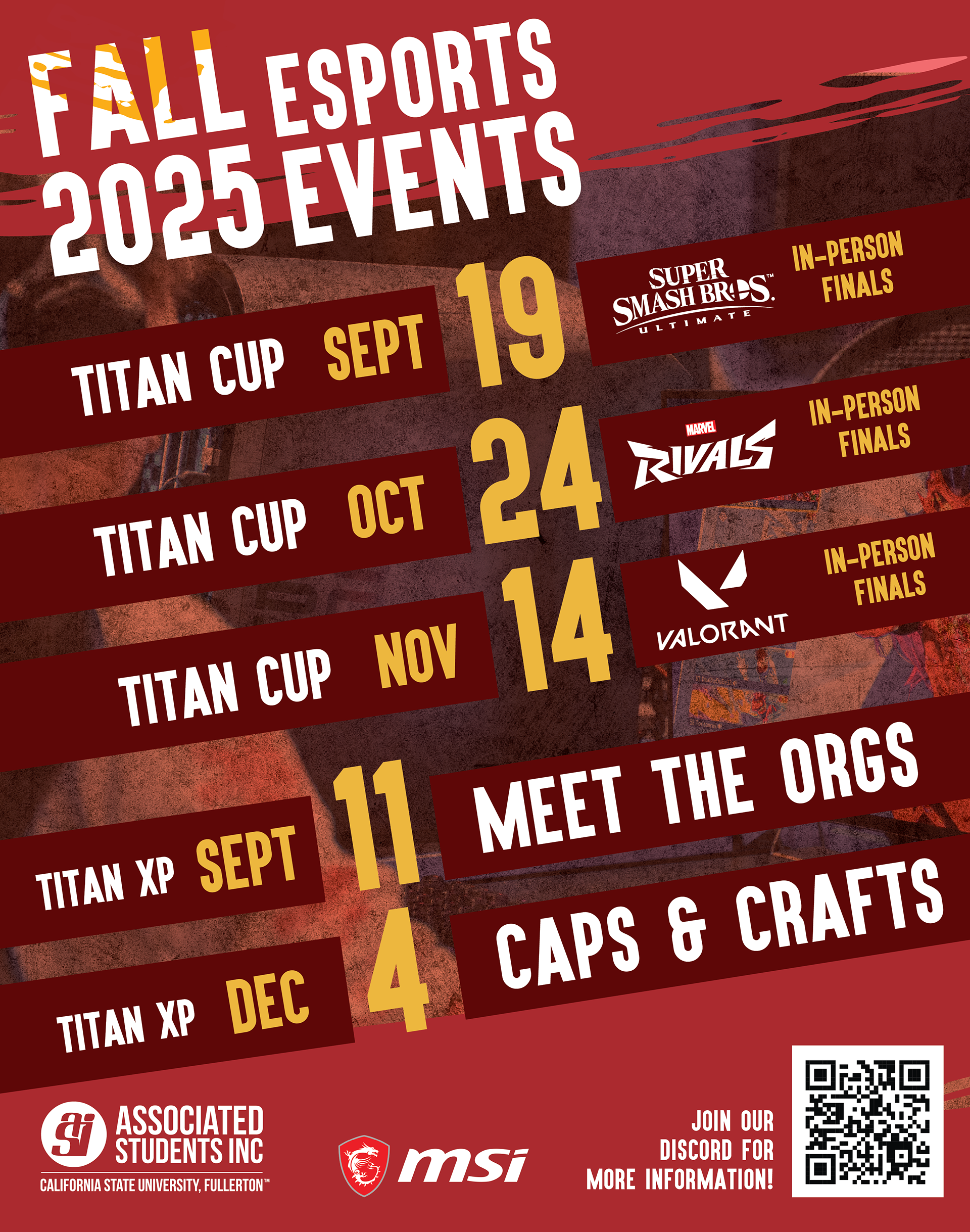 ASI's Marketing, Communications, and Design (MCD) department manages 500+ design requests a year, for all events and programs from the Titan Student Union, Student Recreation Center, Children's Center, Student Government, Programming, etc. As Design Lead, I managed the department workflow and contributed design work for all sorts of projects. All work here is original, besides the Work from Style Guides section.